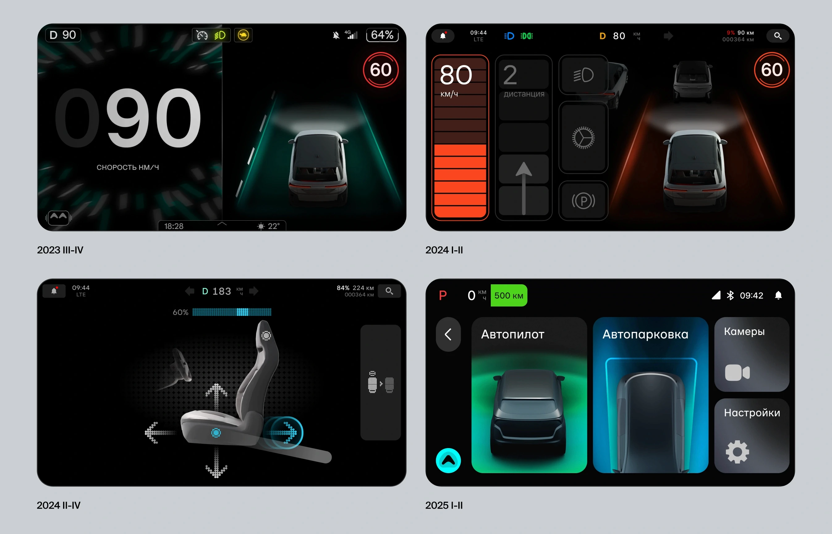 I focused on the logic and UX of the «Driving Control» service. This involved designing the visual language for adaptive cruise control, lane-keeping assist, and traffic jam pilot. We experimented with different conceptual approaches to make complex sensor data easy to read at a glance, ensuring a safe and predictable driving experience.
