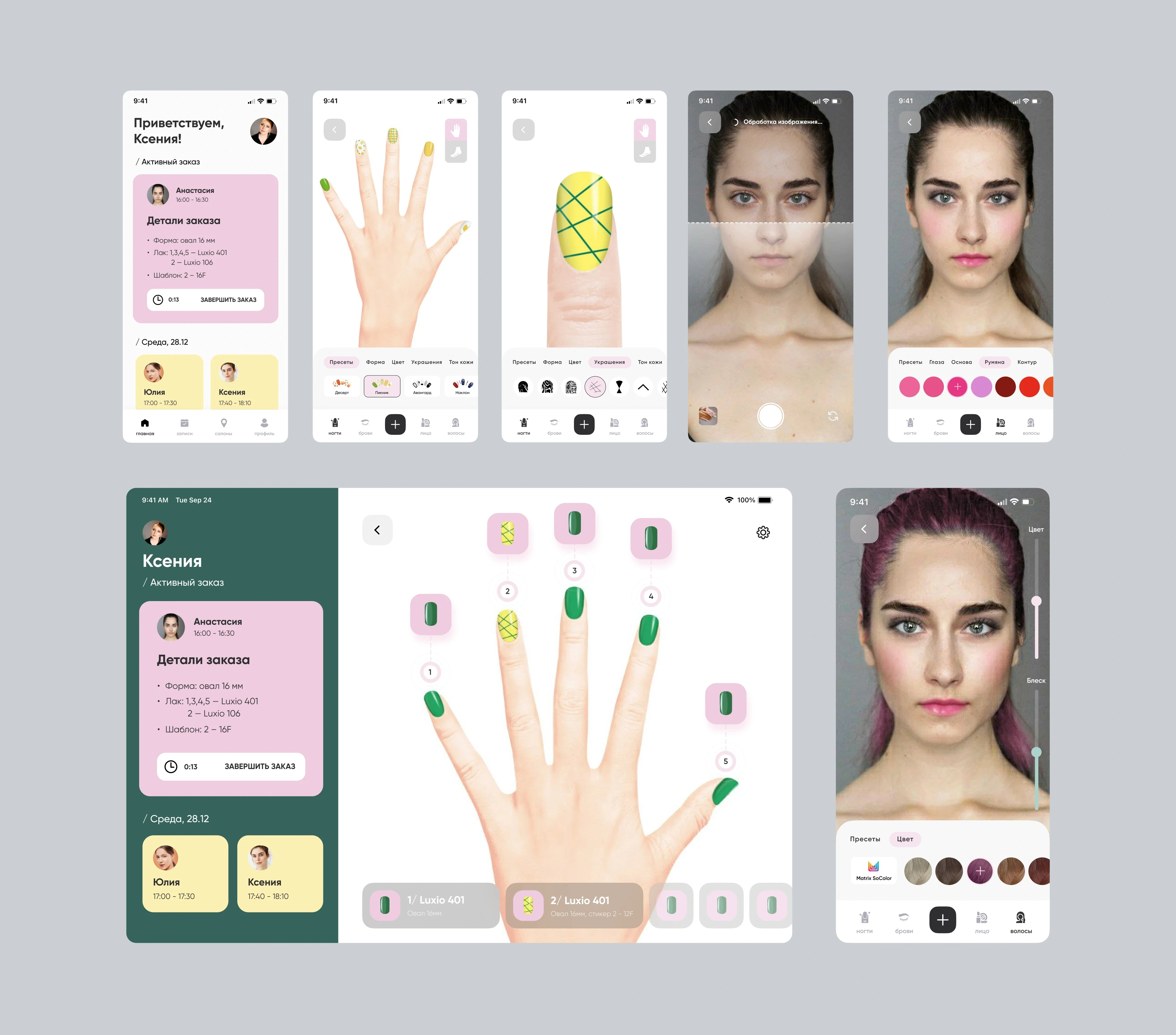 As part of the broader franchise ecosystem, I adapted the technology for SODA Nails. This involved designing two additional applications: a client-facing app for virtual nail design previews and a professional iPad dashboard for nail technicians. The master app acts as a command center, allowing technicians to view active orders, customer style preferences, and AI-generated «fitting» results, ensuring a personalized and efficient service for every client