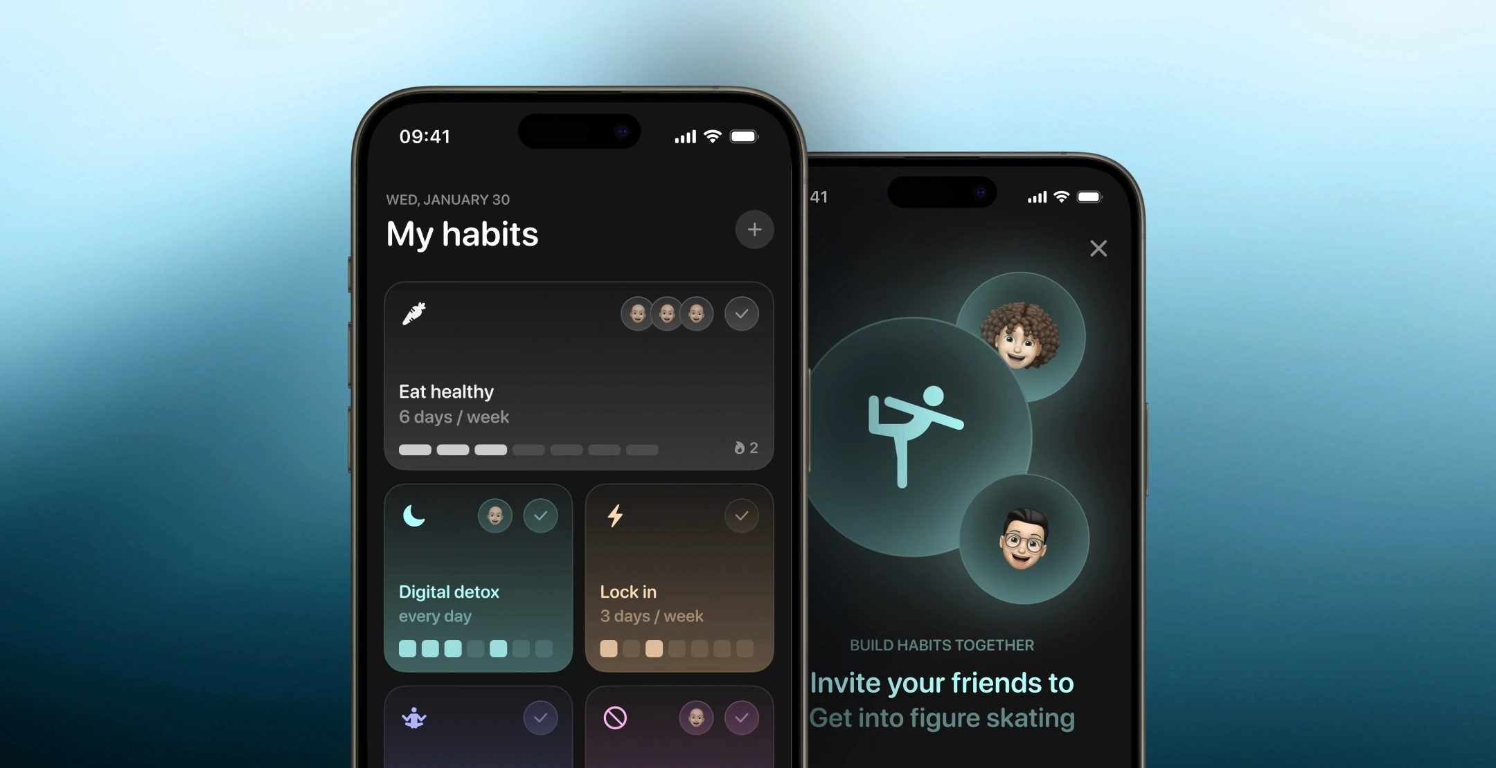 The primary challenge was to enter a saturated market by offering something truly unique: a social habit tracker. Most existing apps are either too clinical or lack a community aspect, leading to high abandonment rates. I needed to design an experience that felt as native and high-end as Apple’s own system apps while integrating complex social features like friend activity feeds and shared challenges. A key goal was to match the UI standards of market giants, incorporating advanced aesthetics like «liquid glass» effects even before they became part of the official iOS 26 guidelines.