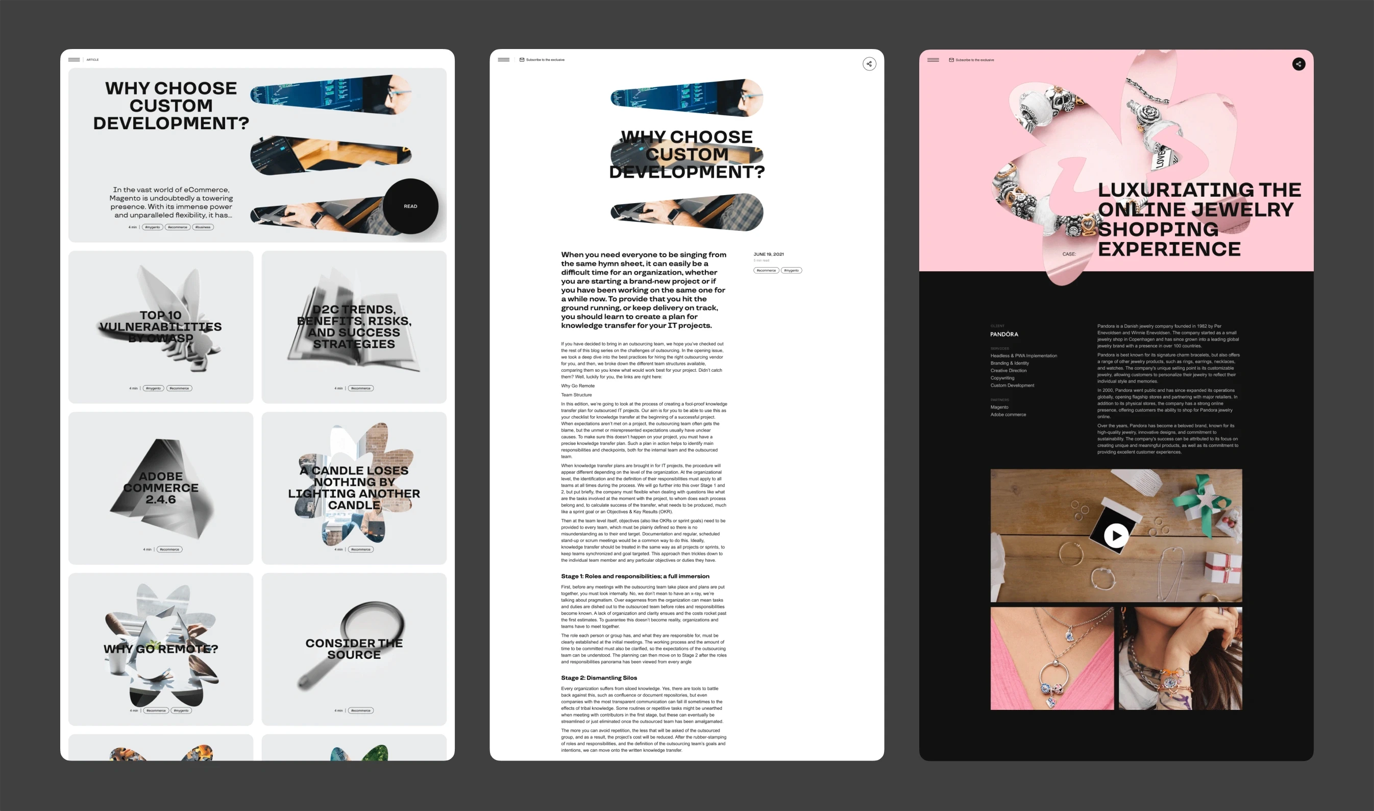 I focused on creating custom 3D and 2D graphics for the agency’s website and blog. Instead of using generic stock imagery, I developed unique visual metaphors for technical articles (e.g., Adobe Commerce 2.4.6, D2C trends). These assets not only improved the aesthetic appeal of the long-reads but also helped in structuring complex information, making the content more digestible for Mygento's clients and partners.
