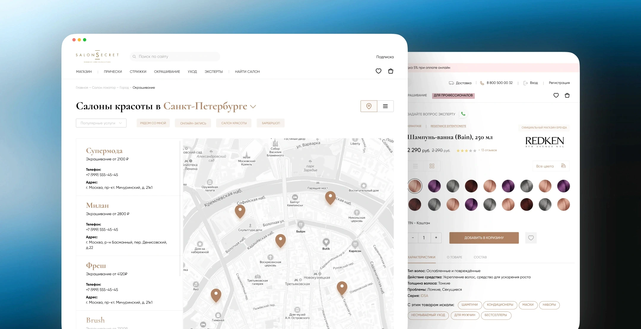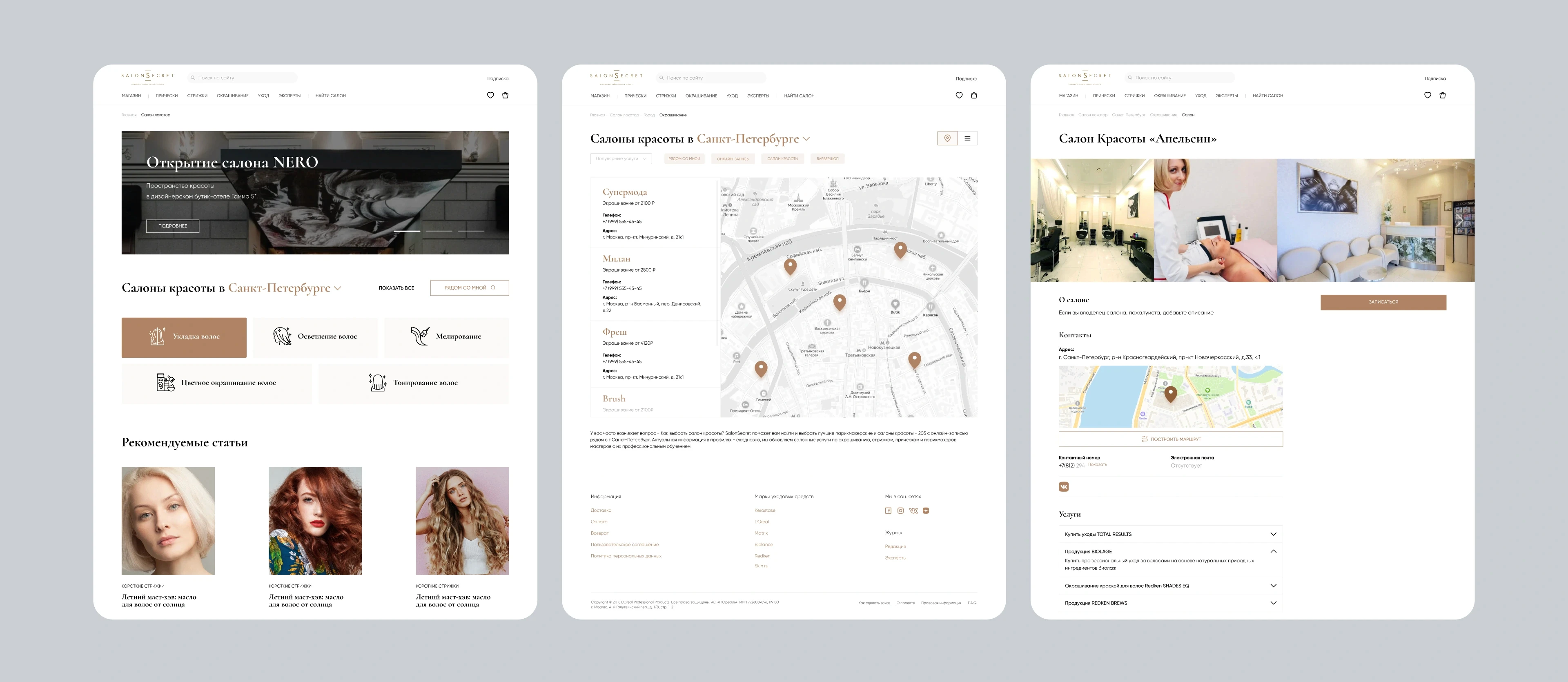 I developed the «Salon Locator», an interactive service helping users find professional beauty salons. This involved creating an intuitive map interface, regional directories, and detailed salon profiles. The goal was to provide a seamless bridge between online product discovery and offline professional services.