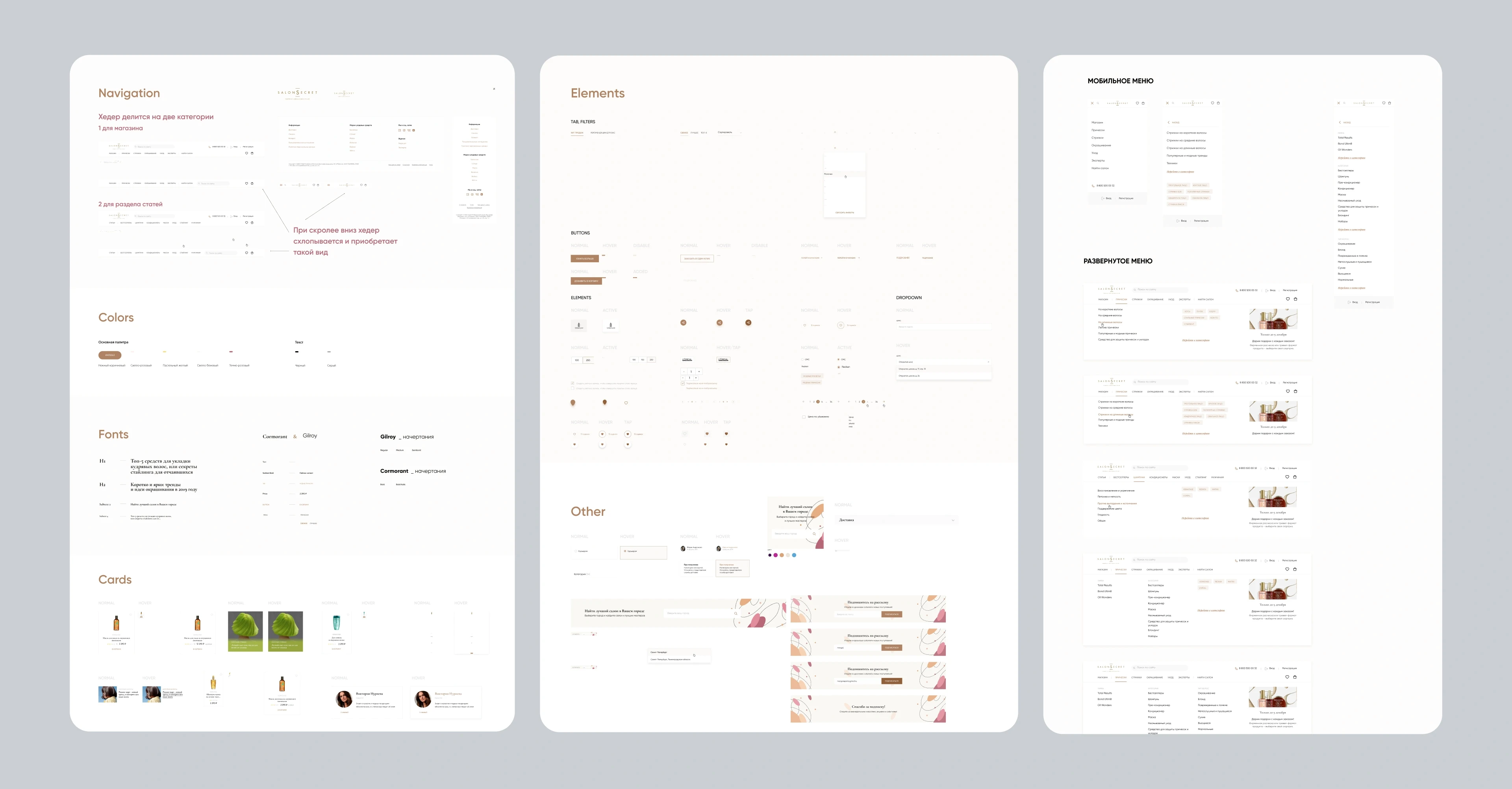 To tie the entire ecosystem together, I built a comprehensive UI Kit and Design System. This served as the «single source of truth» for the project, covering everything from typography and color palettes to complex navigation components and button states. By establishing this foundational library, I ensured that the shop, the locator, and the blog remained visually and functionally consistent, making the platform scalable and easy to maintain as it grew.